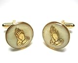 White & Gold Pray Praying Peace Hands Cufflinks. Each pair is set in a gold setting and designed to ensure the highest quality. Details * gold Plated * Height: 3/4 inches * Weight: 15 grams * Diameter: 15 mm